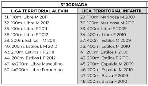 Tendrán que nadar las siguientes pruebas por categorías y edades: